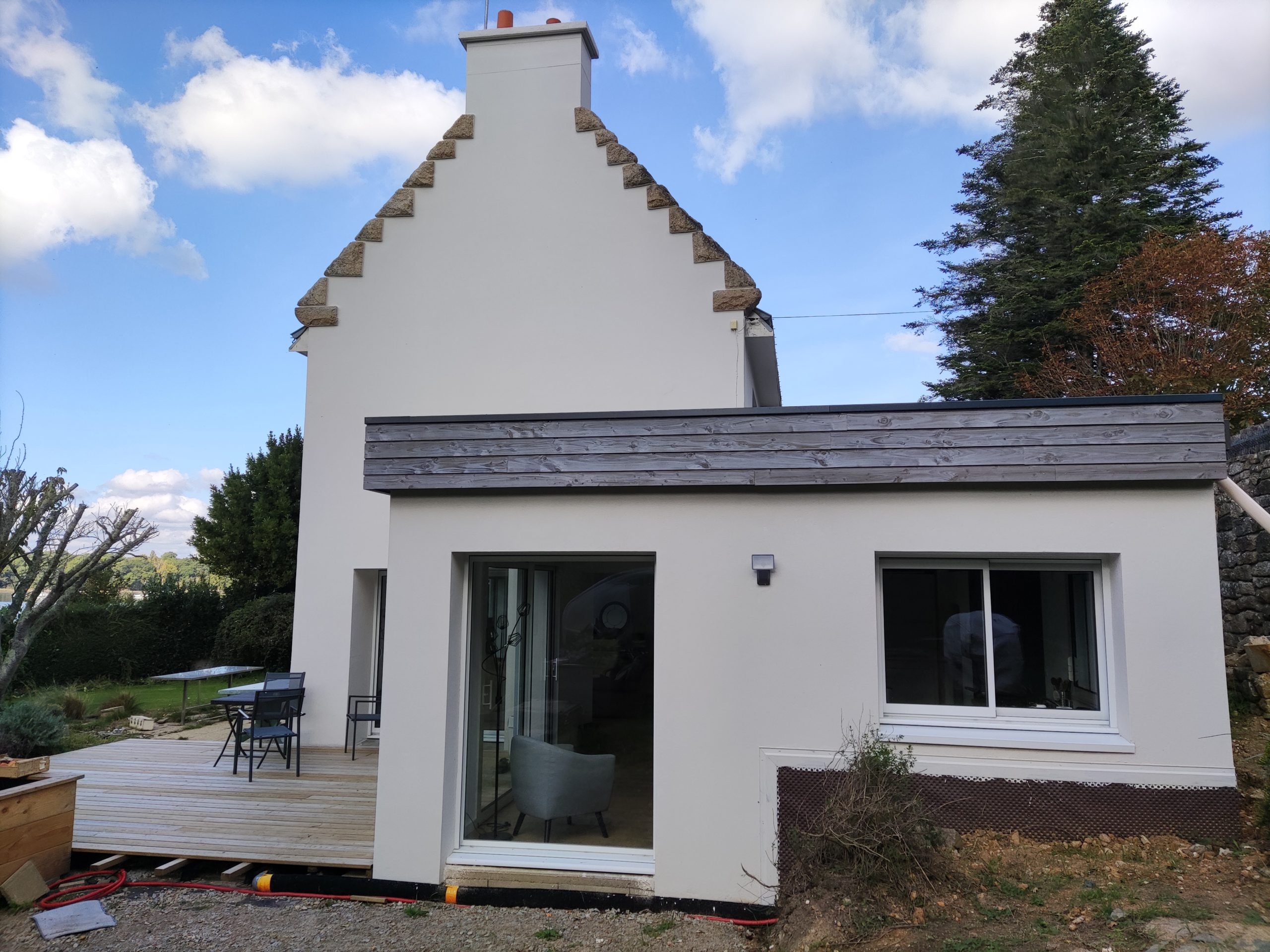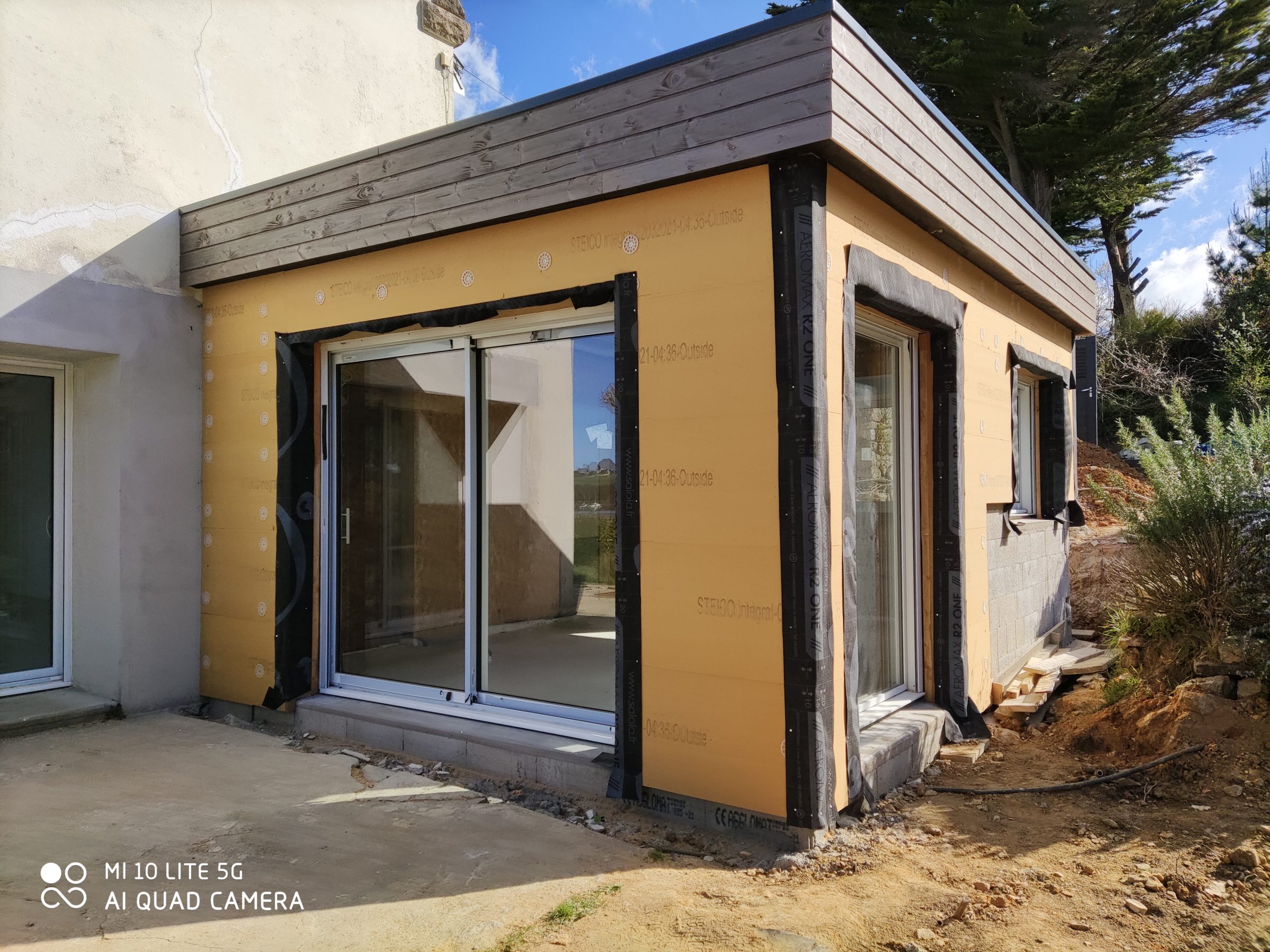 Une magnifique maison en pleine nature avec vu sur la rade de LORIENT qui manquait réellement d’une pièce pour en profiter pleinement en saison froide. La solution nous l’avons trouvé en construisant cette cuisine avec un mode de construction en SARKING , la spécialité de KOKONOWOOD!! Une isolation biosourcé optimisé pour une hygrométrie parfaite avec un minimum d’apport de chauffage .