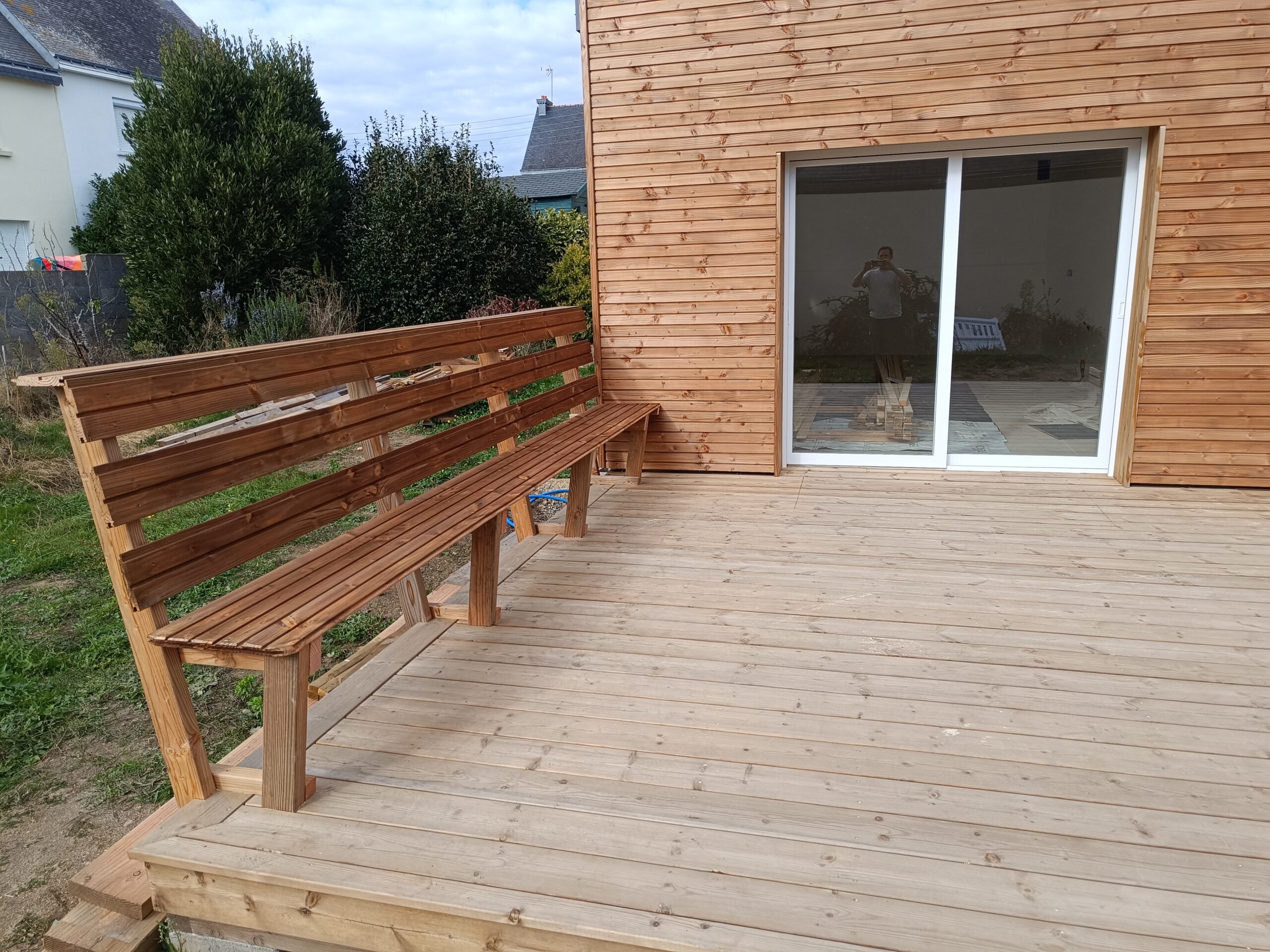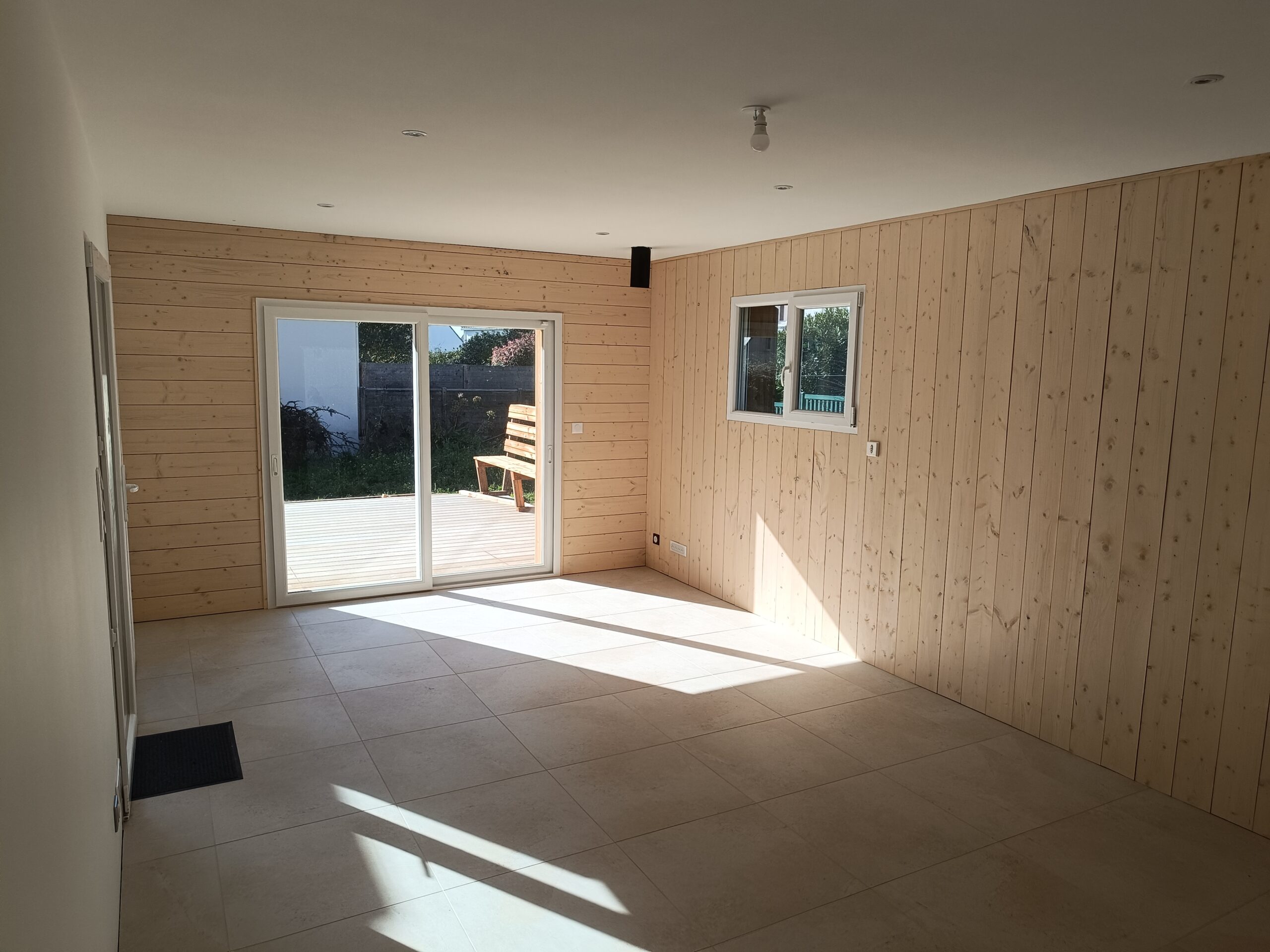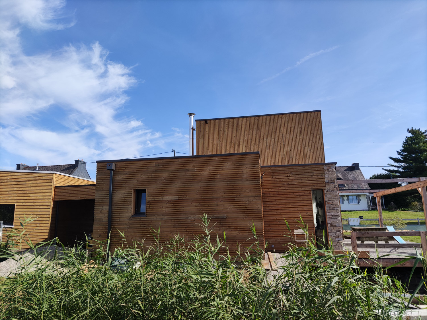 A 200m du rivage dans la rade de LORIENT, la Bord de MER a trouvé sa place dans un quartier déjà bien installé. Cette Maison a été imaginée en deux parties bien distinctes ; un côté habitation de 80m2 avec étage pour une petite famille et une seconde pour l’accueil de la famille et des ami(e)s de 50m2. Cette grande maison a donné l’occasion à un certain nombre de stagiaires du lycée professionnel Julien Crozet juste de Port Louis de mettre en application deux sauts de systèmes constructifs en ossature bois.