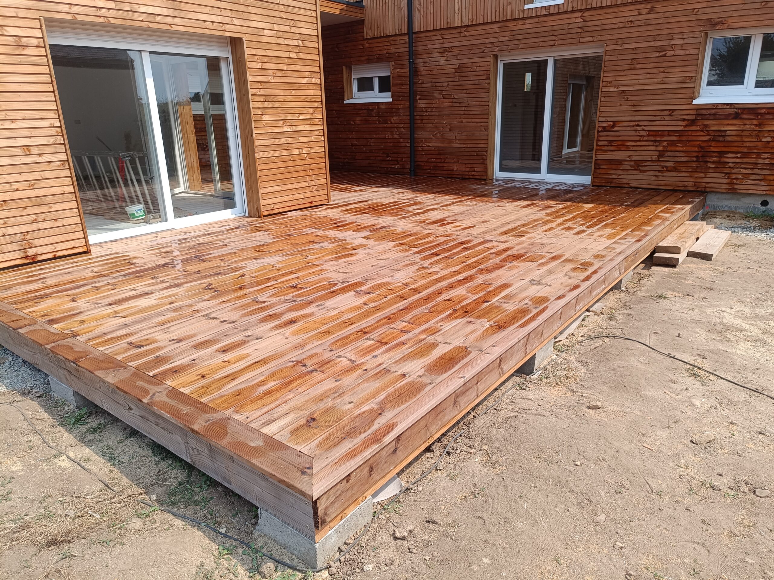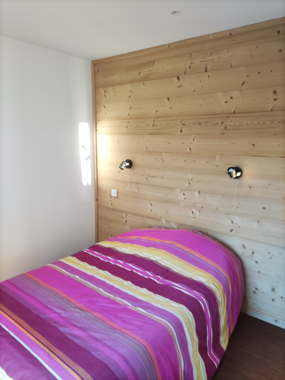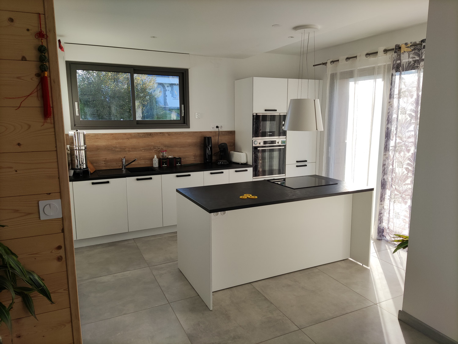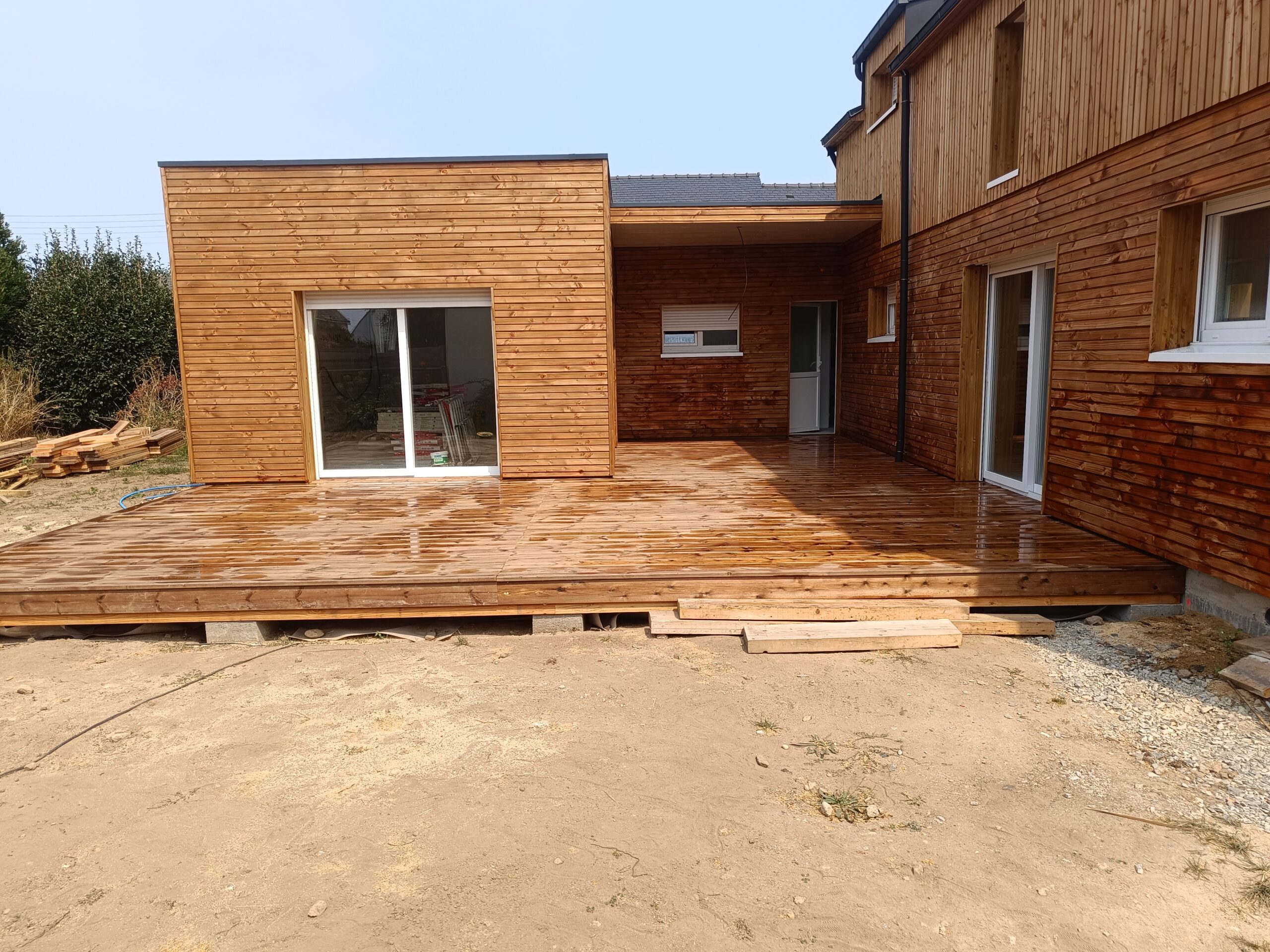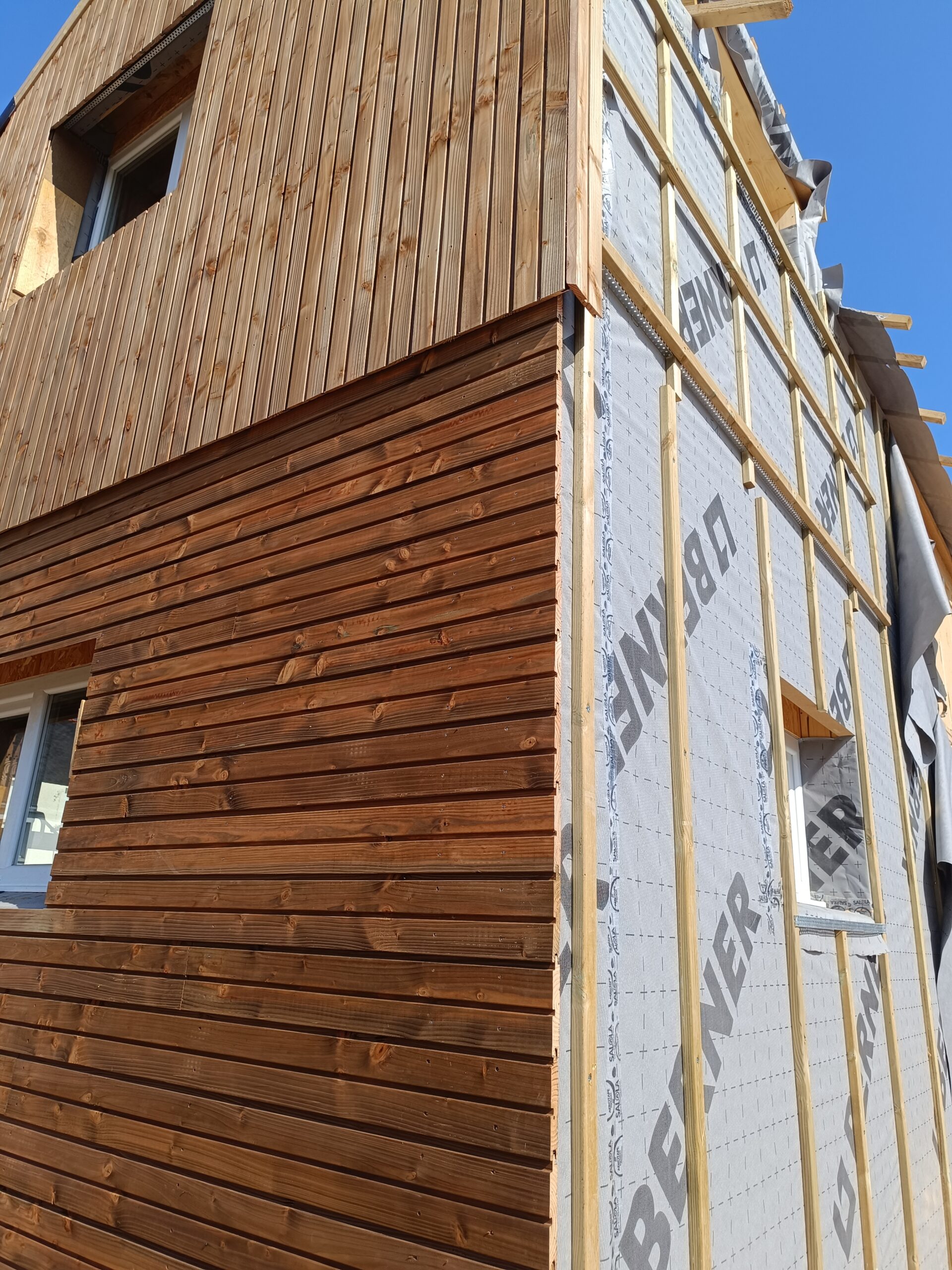 Sur la maison de 80m2, la solution du SARKING a été mise en œuvre. Cette technique consiste à isoler les murs de laine de bois et de la recouvrir dans sa totalité d’une couche de panneaux de fibre de bois qui coupe complètement tous les ponts thermiques possibles. Une température du bâti optimisée été comme hiver, avec le choix de la mise en place d’un VMC double flux qui régule l’air entrant et sortant par l’échange de calories des deux flux.